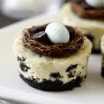 Bird’s Nest Mini Oreo Cheesecakes are festive Easter desserts made with a chocolate Oreo crust, creamy cheesecake filling, and a decorative chocolate coconut nest topped with candy eggs. These bite-sized cheesecakes are rich, smooth, and perfect for spring celebrations, dessert tables, or holiday gatherings.