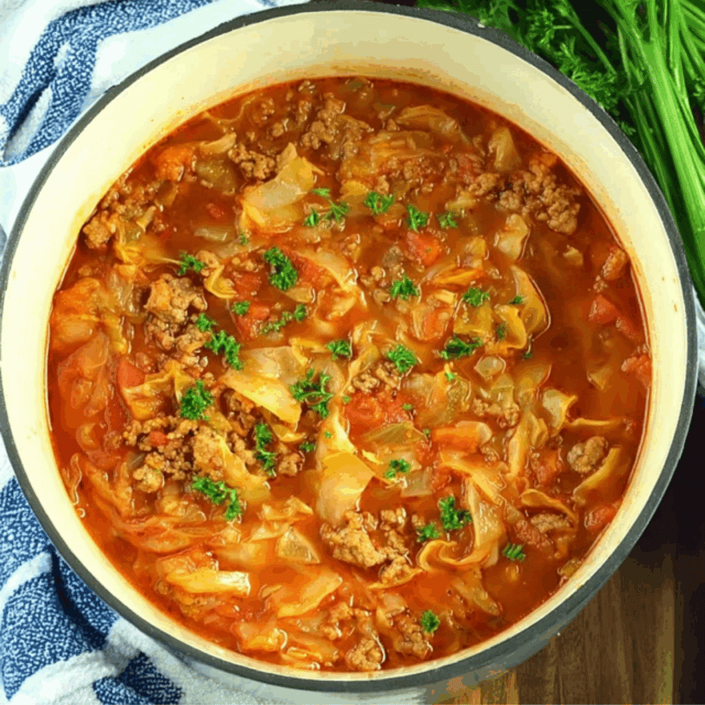 Cabbage Roll Soup is the perfect comfort food that combines savory flavors, hearty ingredients, and simple preparation. This easy recipe takes the hassle out of making traditional cabbage rolls while still delivering the same delicious, satisfying taste. Whether you’re enjoying it for dinner on a cool evening or making extra for meal prep, this soup is sure to become a staple in your kitchen. With its rich broth, tender vegetables, and comforting meat base, Cabbage Roll Soup offers a warm, nourishing meal that the whole family will love.